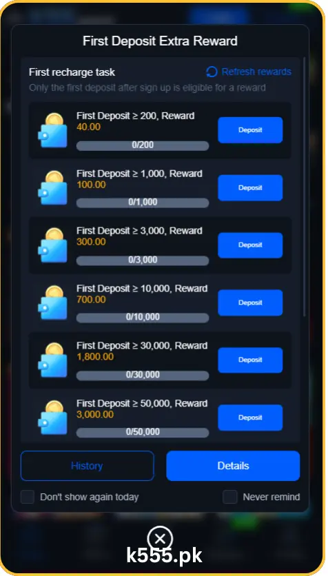 The k555 game provides an easy transaction and withdrawal process to enable the users. Gamers can transfer money using a functional bank account, cryptocurrency, and e-wallets. The game is especially targeted to Pakistani viewers. Thus, it promotes such brands of e-wallets as JazzCash and Easypaisa. All transactions are heavily encrypted with the use of OTPs and heavy SSIs. As such, players can deposit and withdraw without considering the issue of privacy. Deposit and withdrawal process: To guide the players, we have critically compiled key steps to explain the deposit and withdrawal process.
